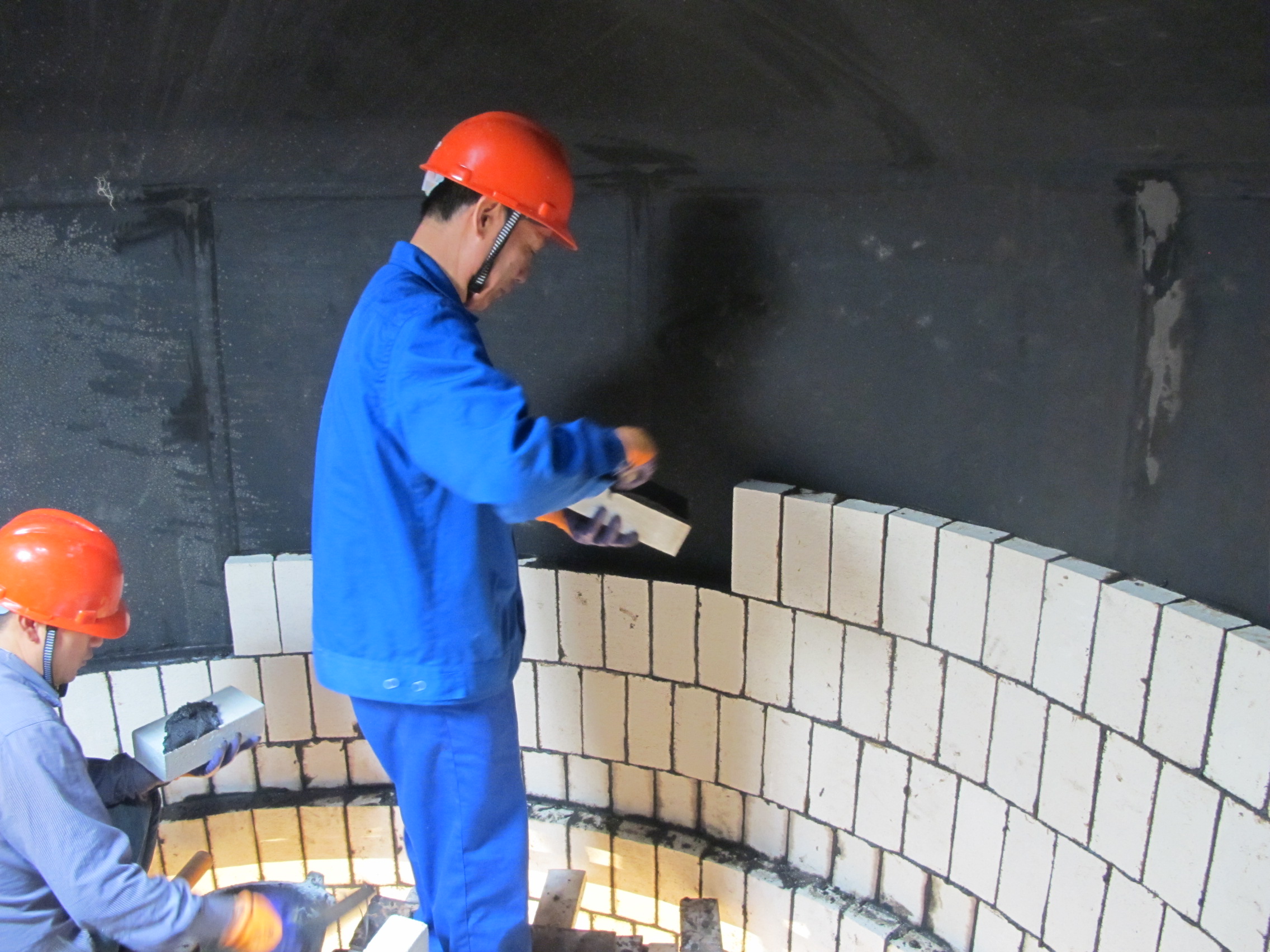 3、襯砌耐酸板材的膠泥稠度,在施工開始時可先試配一盤,以操作適宜為度。若發現稠度不能滿足施工要求時,可適當調整,但切不可在膠泥初凝之后或變稠硬化時補加YJ-II呋喃樹脂膠二次拌和使用。